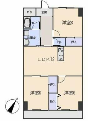 | 間取り | 3LDK(LDK12、洋6、洋6、洋6) | 主要採光面 | 南東 |