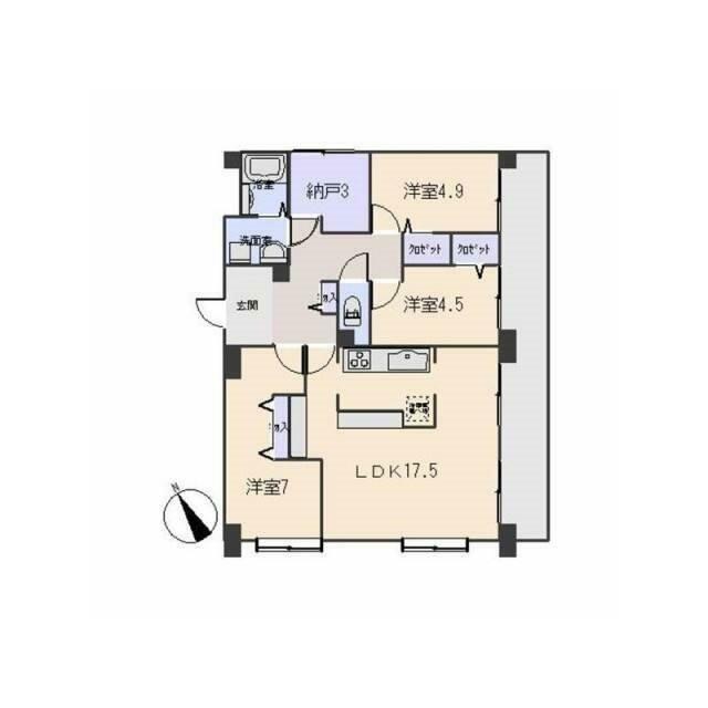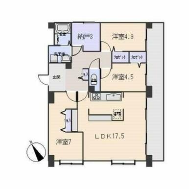 | 間取り | 3SLDK(LDK17.5、洋7.1、洋4.5、洋4.9、S3) | 主要採光面 | 南西 |