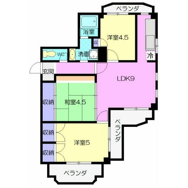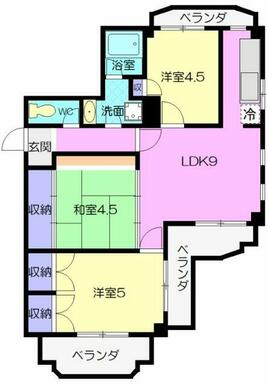 | 間取り | 3LDK(LDK6、洋4.5、洋4、和4.5) | 主要採光面 | 南 |